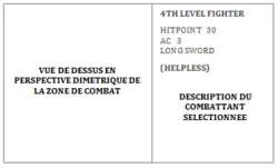 Lors des phases de combat, le jeu s'affiche en vue de dessus en perspective dimétrique[17]. Le joueur peut alors décider quelles actions vont réaliser ses personnages à chaque tour, ces actions prenant effet immédiatement et non à la fin du tour comme c'est souvent le cas dans d'autres jeux de rôle[18]. Optionnellement, le joueur peut laisser l'ordinateur décider des mouvements des personnages à chaque tour[16]. Si les points de vie d'un personnage descendent en dessous de zéro, il doit être soigné par un autre personnage sous peine de mourir[15]. Le groupe est susceptible de rencontrer des ennemis de manière aléatoire ; d'après le magazine Dragon, ces rencontres suivent le même schéma que les « tables de rencontre » dans Donjons et Dragons[1]. Des options sont disponibles en fonction de la classe des personnages. Ainsi, un guerrier peut s'armer d'une arme de mêlée ou de tir à distance, les magiciens peuvent lancer des sorts et les voleurs peuvent attaquer un ennemi par derrière[15]. Lorsqu’ils gagnent des niveaux, les guerriers deviennent capables d'attaquer plus d'une fois par tour et de « balayer » les ennemis proches, blessant ainsi plusieurs créatures d'un seul coup[5]. Les magiciens peuvent mémoriser et lancer un certain nombre de sorts chaque jour. Une fois lancé, un sort doit à nouveau être mémorisé avant d'être réutilisé. Cela nécessite une heure de repos pour l'ensemble du groupe, lors de laquelle ils restent à leur campement. Ce repos permet également de soigner les personnages blessés[19],[20].