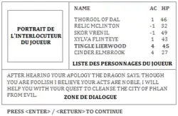 D'après la preview de Computer Gaming World publiée en 1988, l'interface du jeu reprend des éléments de jeux de rôle plus anciens. La vue en trois dimensions (en haut à gauche de l'écran) est ainsi jugée identique à celles de Might and Magic ou de The Bard's Tale et la fenêtre qui affiche la liste des personnages est comparée à celle de Wasteland. La critique note également que l'utilisation d'un personnage pour représenter le groupe est tirée du jeu Ultima V[38]. D'autres critiques soulignent également le manque d'originalité de son interface ou jugent qu'elle « n'est pas un modèle de clarté »[13],[39].
