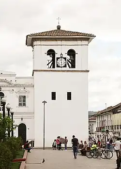 - Torre del Reloj en français : « Tour de l'Horloge » : construite entre 1673 et 1682, la Torre del Reloj est surnommée le « nez de Popayán ». Après le tremblement de terre de 1983, l'horloge fut restaurée et remise en service[18] ;