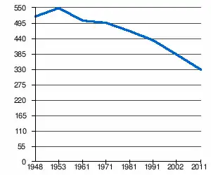- 1 2 (sr + en) « Livre 20 : Vue d'ensemble comparative de la population en 1948, 1953, 1961, 1971, 1981, 1991, 2002 et 2011, données par localités) » [PDF], pages du recensement de 2011 en Serbie - Institut de statistique de la république de Serbie, (consulté le )