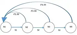 On considère une population structurée en quatre classes d’âge (Figure 1). Pour chaque classe d’âge on a F le taux de fécondité, S le taux de survie.