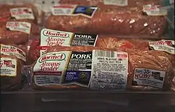 En France, la traçabilité de la viande porcine est assurée dès l'exploitation de naissance des animaux. Chaque porcelet se voit attribuer un numéro d'identification présent soit sur une boucle jaune à l'oreille, soit sur les quatre pièces principales de la carcasse (jambon, épaule, longe et filet). Ce numéro est ensuite reporté sur l'étiquette du produit vendu au consommateur[1].