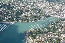 Le vieux port, le château de Pornic, le centre-ville dominé par l'église Saint-Gilles et l'embouchure du canal de Haute-Perche. | |||||