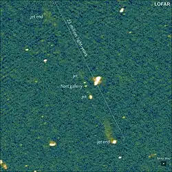 - ↑ (en) Martijn S.S.L. Oei et al., « Black hole jets on the scale of the Cosmic Web », Nature, vol. 633, (lire en ligne ["pdf"])