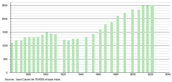- ↑ Fiches Insee - Populations de référence de la commune pour les années 2006, 2007, 2008, 2009, 2010, 2011, 2012, 2013, 2014, 2015, 2016, 2017, 2018, 2019, 2020, 2021 et 2022.