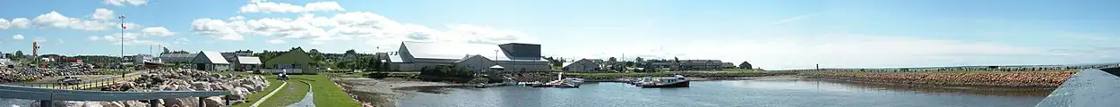 Une promenade sur les jetées offre un point de vue sur le port, la ville, la baie et la Gaspésie.