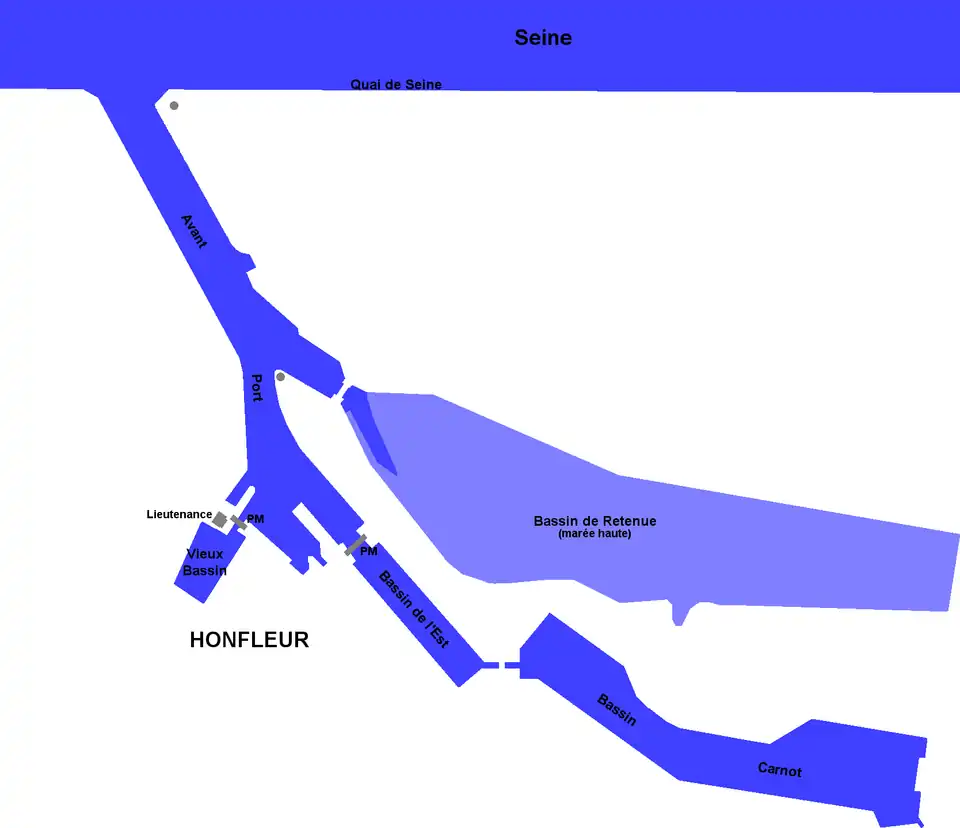 Les plus gros navires à être entrés dans le port de Honfleur étaient l'Aneroïd, un trois-mâts anglais, le Nostra-Madre un trois-mâts Italien et le paquebot anglais, le Newsleydale, avec 5,3 m de tirant d'eau.