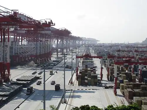 En 1991, le gouvernement central autorise Shanghai à initier une réforme économique. Depuis, le port de Shanghai s'est développé à grande vitesse. En 2005, pour près de 5 milliards d'euros[8], le port de Yangshan en eaux profondes est construit sur les îles Yangshan, un groupe d'îles dans la baie de Hangzhou, reliées au continent par le pont Donghai. Ce développement a permis de passer outre aux difficultés liées à la faible profondeur des eaux du port de Shanghai. Cela a également permis de concurrencer un autre port en eaux profondes: le port de Nongbo-Zhoushan tout proche[9].