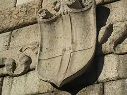 Le lion de Saint Marc a été détruit par les Jacobins en 1801 et remplacé plus tard par un groupe sculptural avec un blason au centre portant l'aigle impériale à deux têtes, plus tard arasée, surmonté d'une couronne[17].