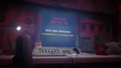 Le joueur peut entendre au même moment l'Annonceur, un système de secours qui maintient les fonctions primaires des bâtiments et les chambres de biostase, prononcer la phrase : « Bonjour. Votre cryostase a duré neuf neuf neuf neuf neuf... ». Il s'agit de la phrase prononcée au début de Portal 2 durant l'examen régulier des capacités motrices des participants placés temporairement en biostase[19].