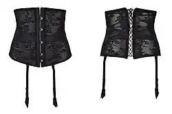 - ↑ Serre-taille : ne pas confondre avec un porte-jarretelles à la ceinture haute et des jarretelles courtes se portant sur le hanches par-dessus la culotte, plus proche de la gaine.