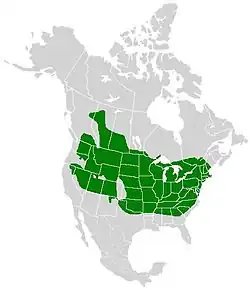 Il est présent dans le centre et le nord des États-Unis et au Canada, dans le sud du Québec, de l'Ontario, de la Colombie-Britannique et de l'Alberta[1].