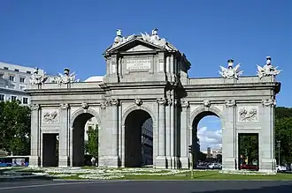 - (es) Cet article est partiellement ou en totalité issu de l’article de Wikipédia en espagnol intitulé « Puerta de Alcalá » (voir la liste des auteurs).