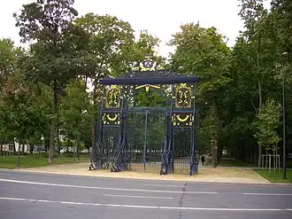 La grille en fer forgée a été exécutée par les serruriers rémois Lecoq et Revel[2]. Construite pour l'entrée du roi à Reims, elle ne fut pas livrée à temps pour le couronnement de Louis XVI. Elle a été installée un an après, en 1776, en bordure de la Vesle. Napoléon l'aurait franchie le sous les acclamations de la population rémoise. Servant de porte à la barrière d'octroi de la ville, elle fut une première fois déplacée du bas de la rue de Vesle en 1847, pour être remontée devant les abattoirs avenue de Paris. Alors que son rôle devenait obsolète et gênante pour la circulation automobile, elle fut démontée le , et remontée le sur les Basses-promenades où elle se trouve actuellement rue de Bir-Hakeim [3]. Les piliers sont encore présents de part et d'autre de l'avenue de Paris.