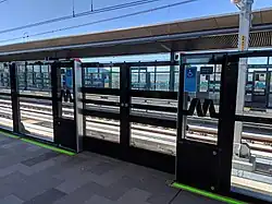 les portes de pleine hauteur, comme sur la ligne A du métro de Toulouse, fixées en hauteur et guidées sur le quai;