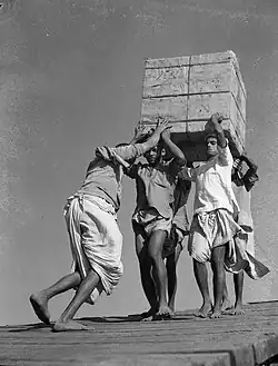 De grands travaux d'ingénierie ont été créés uniquement par la force des bras dans les jours précédant les machines ou même les brouettes et les wagons ; des effectifs importants d'ouvriers et de porteurs achèveraient des travaux de terrassement impressionnants en chargeant manuellement la terre, des pierres ou des briques dans des paniers sur le dos.
