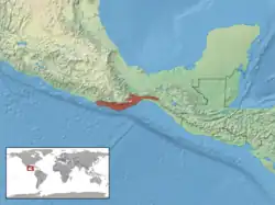 Cette espèce est endémique du Mexique. Elle se rencontre dans les plaines côtières de l'État d'Oaxaca et dans l'ouest du Chiapas[1].