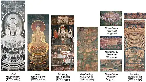 Selon le Song Huiyao Jigao, il y avait six peintures en possession d'une église chinoise manichéenne utilisée comme objets d'apprentissage et de vénération[2] :