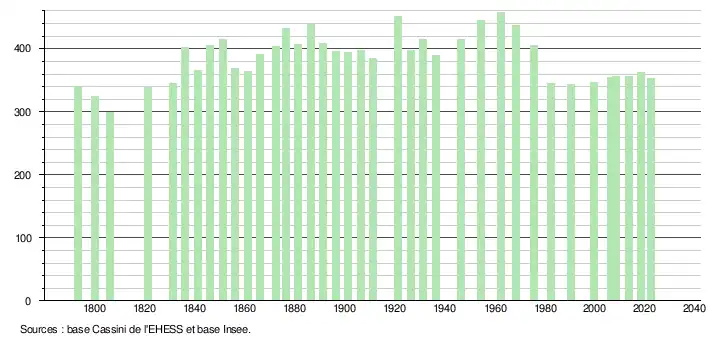 (Sources : Ldh/EHESS/Cassini jusqu'en 1999[24] puis Insee à partir de 2006[25].)