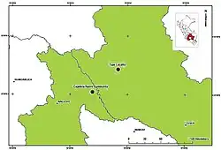 Cette espèce est endémique du Pérou[1]. Elle a été découverte à Alto Shimá à 1 577 m d'altitude dans la province de La Convención dans la région de Cuzco et observée à Cajadela à 2 098 m d'altitude dans la province de La Mar dans la région d'Ayacucho.