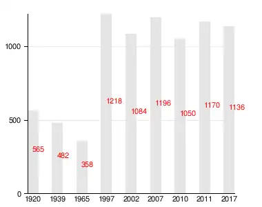 En 1997, les habitants étaient au nombre de 1 218 et en 2002 de 1 084 habitants (dont 91% de Russes)[10],[11].