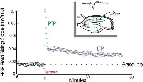 Ces derniers produisent une augmentation durable du taux de transmission du signal entre deux neurones[2]. L'opposé de la PLT est la DLT (dépression synaptique à long terme).