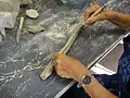Les civilisations primitives utilisaient des pièces de bois habillées d'une corde enroulée pour ce battage. La pièce terminée conservait alors le décor imprimé par la corde.
