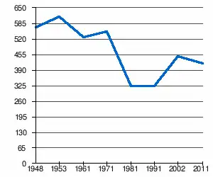 - 1 2 (sr + en) « Livre 20 : Vue d'ensemble comparative de la population en 1948, 1953, 1961, 1971, 1981, 1991, 2002 et 2011, données par localités) » [PDF], pages du recensement de 2011 en Serbie - Institut de statistique de la république de Serbie, (consulté le )