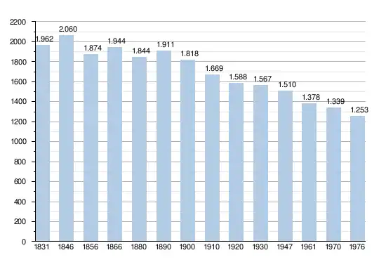 - Sources : INS, Rem. : 1831 jusqu'en 1970 = recensements, 1976 = nombre d'habitants au 31 décembre.
