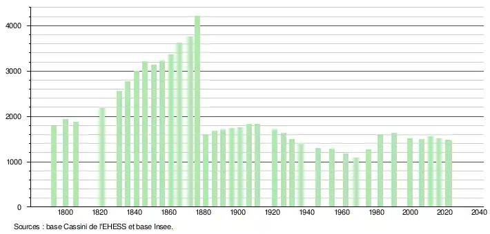 - ↑ Fiches Insee - Populations de référence de la commune pour les années 2006, 2007, 2008, 2009, 2010, 2011, 2012, 2013, 2014, 2015, 2016, 2017, 2018, 2019, 2020, 2021 et 2022.