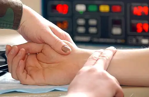 La perception ou non d'un pouls central ou distal est aussi une méthode d'estimation de la tension (voir Pression artérielle > Estimation sans matériel).