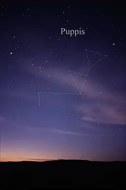Pour trouver la Poupe, il faut imaginer une ligne entre Sirius (α Canis Majoris) et Canopus (α Carinae). La Poupe se trouve 10° à 20° à l’est de cette ligne.