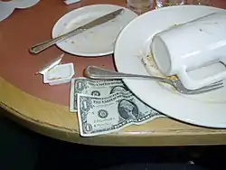 Le pourboire n'est normalement pas laissé sur la table, mais on le donne directement au serveur :
