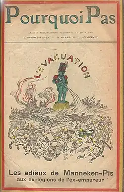 Pourquoi pas ? est un hebdomadaire francophone belge fondé en 1910 par George Garnir, Léon Souguenet et Louis Dumont-Wilden (les « trois moustiquaires »). L'éditorial du 23 avril 1910 pouvait se résumer par ces quelques lignes : « Le chapeau haut de forme de M. le duc de Morny avait de la gravité dans le fond et de la légèreté dans les bords : ce chapeau pourra symboliser notre journal »[1].