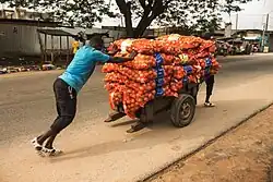 Les opérateurs de pousse-pousse se concentrent en général à proximité des centres commerciaux urbains (marchés, douanes, ports) et font le lien entre demi-grossistes et détaillants.