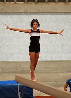 La poutre est un agrès de gymnastique artistique féminine[1]. Une poutre est un parallélépipède rectangle[1], long de cinq mètres[1] et large de dix centimètres[1], reposant à l'horizontale[1], à une hauteur variable[1] du sol.