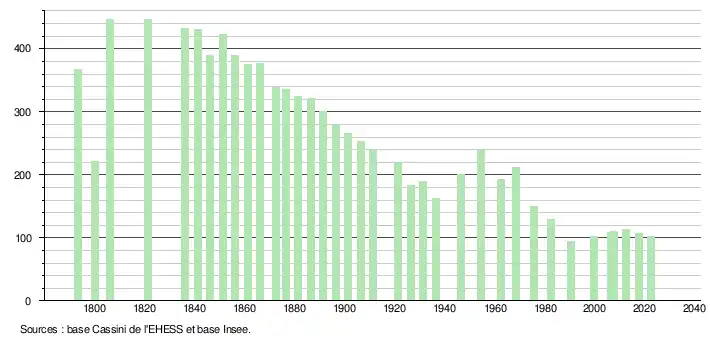 - ↑ Population municipale de référence en vigueur au 1er janvier 2025, millésimée 2022, définie dans les limites territoriales en vigueur au 1er janvier 2024, date de référence statistique : 1er janvier 2022.