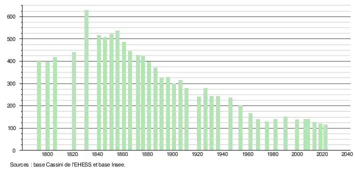 - ↑ Population municipale de référence en vigueur au 1er janvier 2025, millésimée 2022, définie dans les limites territoriales en vigueur au 1er janvier 2024, date de référence statistique : 1er janvier 2022.