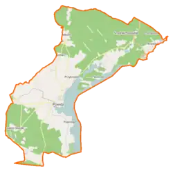 La gmina couvre une superficie de 80,15 km2 pour une population de 2 308 habitants en 2016.