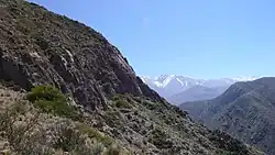 - les sommets secondaires situés à l'est de la cordillère principale, dans les Andes en Argentine. Elle est séparée de la cordillère frontale (en) à l'ouest par la vallée d'Uspallata[3]. Les sommets de la précordillère atteignent environ 3 000 m d'altitude dans la sierra de Villavicencio[3] ;