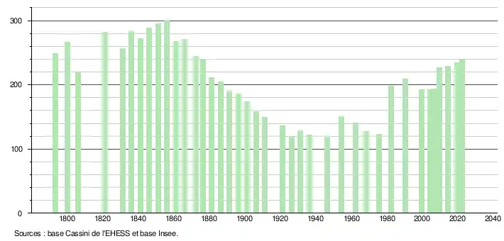 - ↑ Population municipale de référence en vigueur au 1er janvier 2025, millésimée 2022, définie dans les limites territoriales en vigueur au 1er janvier 2024, date de référence statistique : 1er janvier 2022.