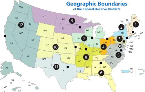 Le projet de loi fut voté à la Chambre des représentants en septembre 1913, mais la partie fut plus difficile au Sénat où les démocrates, sous l'impulsion de Wilson, repoussèrent de justesse un amendement suggéré par Frank A. Vanderlip qui se proposait d'accroître le rôle des banques privées dans le système bancaire fédéral. Par 54 voix contre 34, le Federal Reserve Act fut adopté par les sénateurs et promulgué sous forme de loi par le président Wilson le 23 décembre 1913[44]. Ce dernier désigna Paul Warburg et d'autres banquiers éminents pour tenir les rênes du nouveau système. Cependant, les précautions adoptées pour permettre une décentralisation du pouvoir furent rapidement remises en cause par le poids démesuré des milieux d'affaires new-yorkais, lesquels dominèrent le système de centralisation bancaire en vertu du principe primus inter pares[45]. La banque centrale effectua ses premières opérations en 1915 et joua un rôle important dans le financement de l'effort de guerre des Alliés durant la Première Guerre mondiale[46].