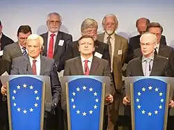 Les trois « présidents européens » : du Parlement européen, de la Commission européenne et du Conseil européen, pendant une conférence de presse au Berlaymont en novembre 2011.