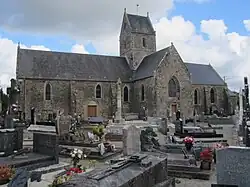 - Église Saint-Pierre des XVe – XIXe siècles, en forme de croix. Elle abrite une Vierge de calvaire dite Sainte-Opportune des XVe – XVIe siècles et un groupe sculpté saint Roch, l'ange et le chien, classés au titre objet aux monuments historiques[21] ainsi qu'un maître-autel du XVIIIe, les statues Notre-Dame des Avents du XVIe et sainte Barbe et sa tour du XVIe, une verrière du XXe de A. Vigneron[7].