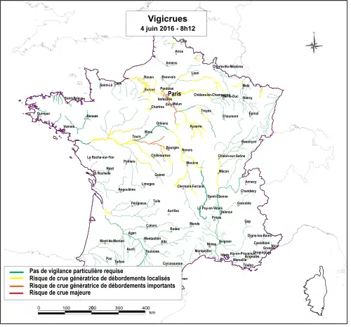 - 2007 : intégration de la vigilance crues dans la carte de vigilance météorologique pour le volet « pluie-inondation »