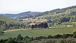 L'occupation des sols de la commune, telle qu'elle ressort de la base de données européenne d’occupation biophysique des sols Corine Land Cover (CLC), est marquée par l'importance des forêts et milieux semi-naturels (75,9 % en 2018), une proportion sensiblement équivalente à celle de 1990 (76 %). La répartition détaillée en 2018 est la suivante : forêts (61 %), milieux à végétation arbustive et/ou herbacée (14,9 %), prairies (14 %), zones agricoles hétérogènes (10,1 %)[21]. L'évolution de l’occupation des sols de la commune et de ses infrastructures peut être observée sur les différentes représentations cartographiques du territoire : la carte de Cassini (XVIIIe siècle), la carte d'état-major (1820-1866) et les cartes ou photos aériennes de l'IGN pour la période actuelle (1950 à aujourd'hui)[Carte 2].