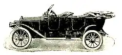 Il s’agissait d’un phaéton-torpedo[4] de 5 places à 3 portes équipée d’un 4 cylindres à soupapes latérales refroidi par eau. Elle était à propulsion arrière avec une boîte à 4 vitesses.