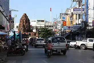 Situé sur un ilot en plein centre de la ville, il est composé de trois prangs sur un axe nord-sud. En face de la tour centrale, qui est la plus grande, se trouve un viharn en ruines. Les trois tours sont en brique rouge, avec des murs à redents sur lesquels restent quelques traces de stuc. La forme des deux tours latérales rappelle un peu le profil du Phnom Rung.