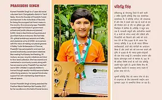 - ↑ (en-US) « Mahindra World School student Prasiddhi Singh conferred Pradhan Mantri Rashtriya Bal Puraskar 2021 », India Education,Education News India,Education News | India Education Diary, (consulté le )