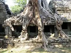 - Restes d'un arbre ayant poussé sur l'un des bâtiments du temple.